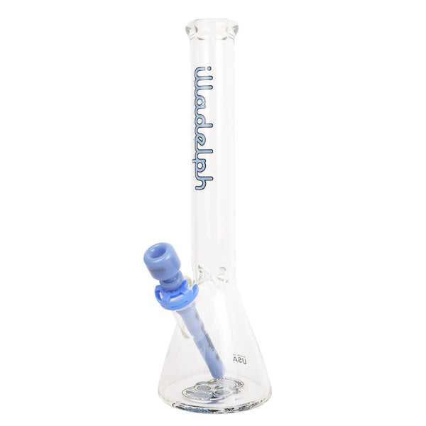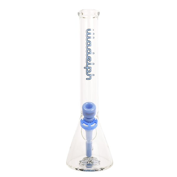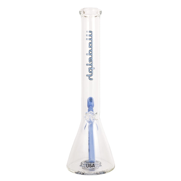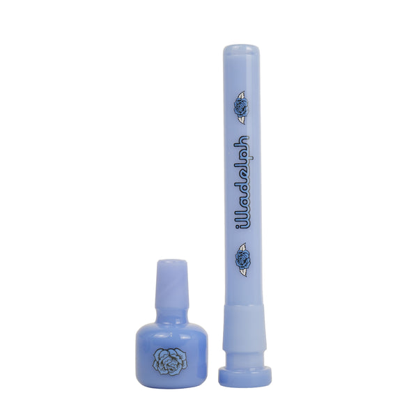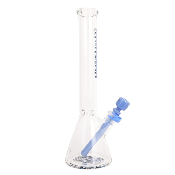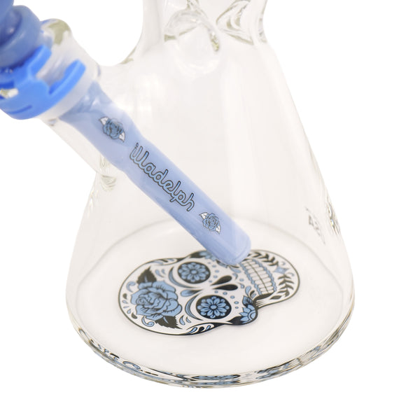 ARTIST: IlladelphHEIGHT: 15"BASE DIAMETER: 4.5"JOINT SIZE: 14mm 45ºCOLORS: Clear, Blue Day of the Dead Downstem, Blue Label